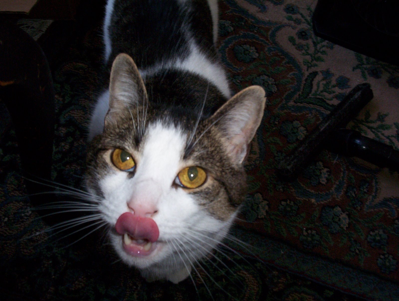 side, and it’s cold inside, and I think I have a cold. Or a really bad allergy attack going on. Whatever. I feel totally crappy for the umpteenth day in a row. Hmmm. The cup in that woman’s hand makes me think of tea. I’m going to go make myself a cup, since Simon will NOT ever do it for me. Doesn’t he get that I’m the one who feeds him and cleans out his litter box? A little reciprocation would be nice, kitty.
