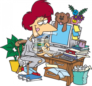 I’m just overwhelmed by the mess, I think. The house isn’t dirty, but it’s cluttered beyond my ability to cope with it. I need to move a bookshelf, but first I have to remove what’s on it, and put it where? Before I can do that, I have to fold the clothes on the chair in front of it and put them away, but there is more stuff in front of the closet door. Before I can move that, I have to……………and on and on. It’s not that I have so much more stuff, it’s just that my organization went out the window the whole first of the year when I was so ill with the fibro, and as I’ve slowly gotten better, just keeping up with the dishes and the normal tidying up is pretty much all I can manage. So things just sit where they are.
