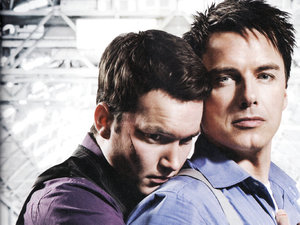 And finally———–Jack and Ianto (John Barrowman and Gareth David Lloyd), courtesy of Torchwood, the Doctor Who spin-off. I refrained from posting any R-rated, so my DDs won’t feel quite as much need to put me away somewhere. But I could. Oh yes I could.