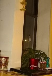 Did not get to have even a glimpse at the comet, due to clouds and trees and light pollution. I cannot see stars, ever, where I am. Or the moon, cause my windows are in the wrong place. Except in October, for some reason if I sat in exactly the right place, I could see it at an angle. Weird. But cool. Yes, the round white light is the moon, rising. Surprise! First year I ever noticed it, but maybe earth orbit changed just enough to make it possible.