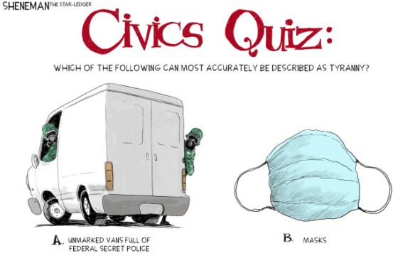 Nothing good going on in this country. The whole Portland and sending troops into big cities thing is rather scary. I have pretty much started to avoid it all, because there is nothing I can do about any of it, and life is hard enough with chronic illness and pain. Less stress is a good thing. Speaking of which, a cartoon from a newsletter I get: