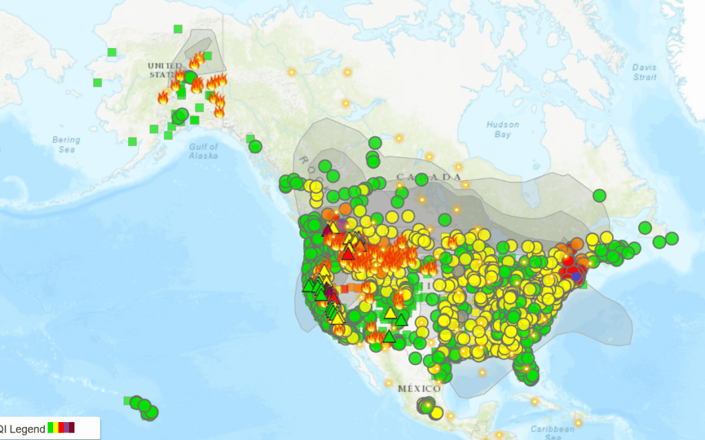 Is everywhere. Maybe it was before, but today is the first day I’ve been out where you can see some distance, and you can see the smoke everywhere. Last week, I thought it was up in the atmosphere, but it is ground level today. Still, my air quality app says air quality is Moderate. Hmmm. Scary. Seems the whole western part of the US is on fire. Here’s the site, if you’re interested. You have to let it access your location.
