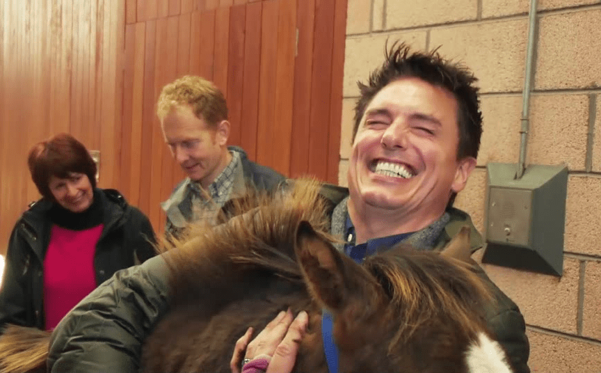 And another. Barrowman never fails to make me laugh or smile. Here, the horse is standing on his foot. š