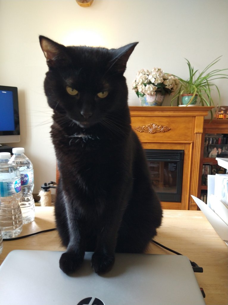 Did I mention that Gertrude had worms and got treated and has had a major personality change since? Back to the cute and affectionate and not hostile kitty she had been until recently, so I guess her unpleasant personality was a result of not being well. Wish I knew how to tell if something is wron or just her being grumpy. Glad she is back. Glad vet gave her such a clean bill of health. Even teeth and gums are spectacular. I do believe this is a result of her only ever eating Blue Buffalo Wilderness grain-free food since she moved in. Glad I got her so young, too. Not quite three months old, so did not have long eating Friskies. Friskies is corn. Cats do not eat corn, people. Geez. She was two in June, so over two years of Blue Buffalo. Think they’ll give me a discount for plugging them? LOL Not really plugging them, just relating how well Miss G is doing eating their food. She just needs more exercise, and those darn giant cat wheels are really expensive and no guarantee she’d use it anyway, so all I’ve got is a laser light that she chases a bit then lays down and watches it. No, Gertrude. You need to move, darn it.