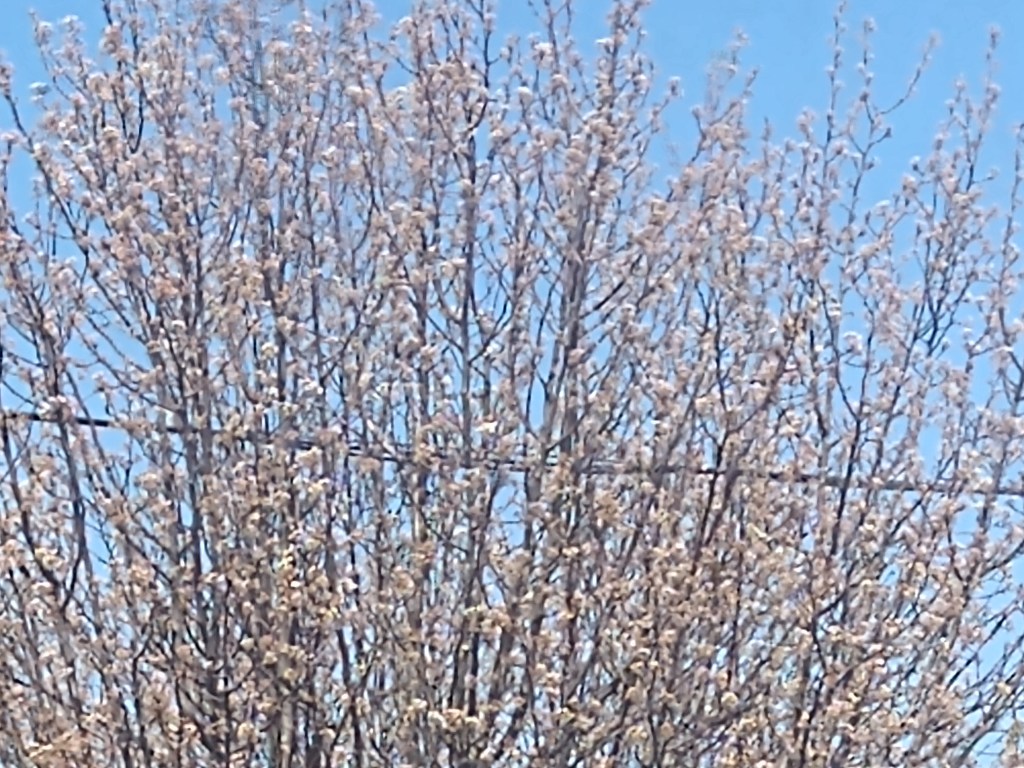 And now, two hours later, a different tree has dozens of blossoms just opening. Wish I could take a picture through the binoculars, cause you can really see all the teeny buds and the flowers just starting to open. Spring is sprunging. Finally.