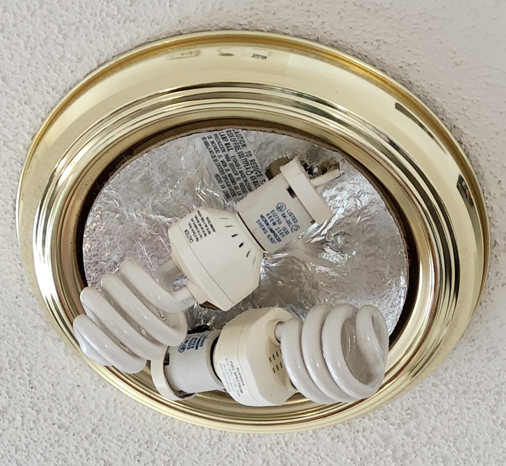 Oh, here is a picture of my full-spectrum bulbs. They are too big to put the cover on the light fixture, which I think would negate the full-spectrum-ness anyway. I would have done a picture of my desk, but it lives under a mountain of paperwork and stuff at the moment. Oh. well. 🙂