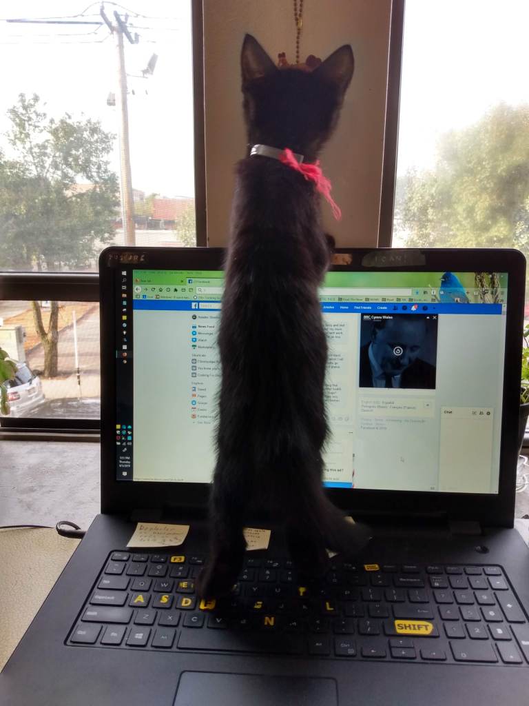 Being angry is not healthy, but it’s hard not to be. So focusing on clearing this laptop up, looking at the beautiful day out my windows, and laughing at my cat, who since losing weight has been acting more like she did as a kitten. Leaping, trotting, hopping, making me laugh all day long. Cute kitty is cute.