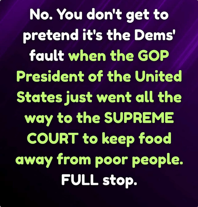 Isn’t this the president who is fighting the courts to keep food from children? That president? How can people actually believe this. Oh, wait. Cults. You do not believe what you see with your own eyes or hear with your own eyes. You only believe what the cult leaders tell you to believe. Do they not know that the entire government is run by the Republicans? We are so screwed.