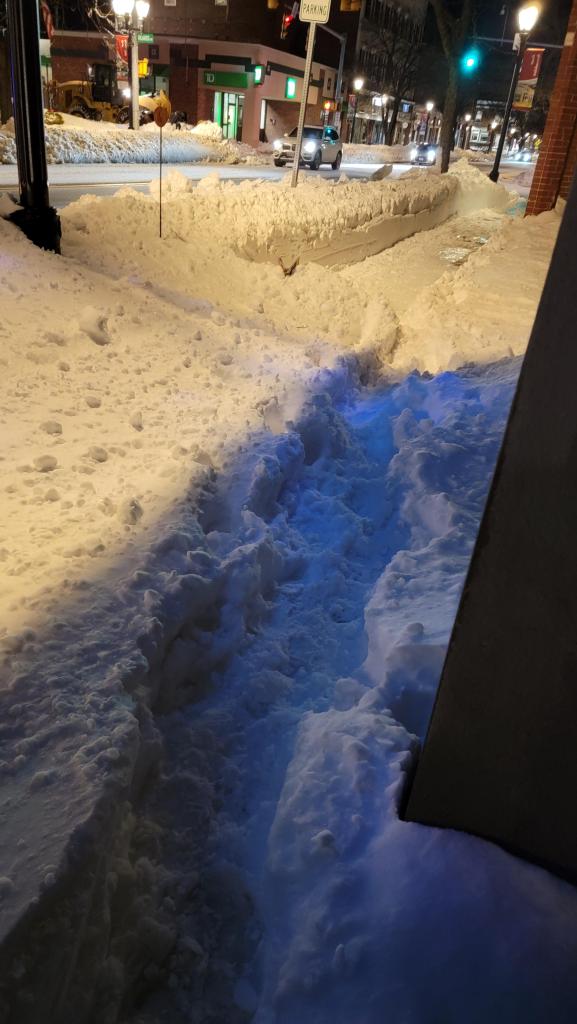 Highway Department used to be much better at taking care of this. DD had to walk a few blocks through this to get to her car to dig it out when the parking ban was lifted. You have to move your car right now when it’s lifted.