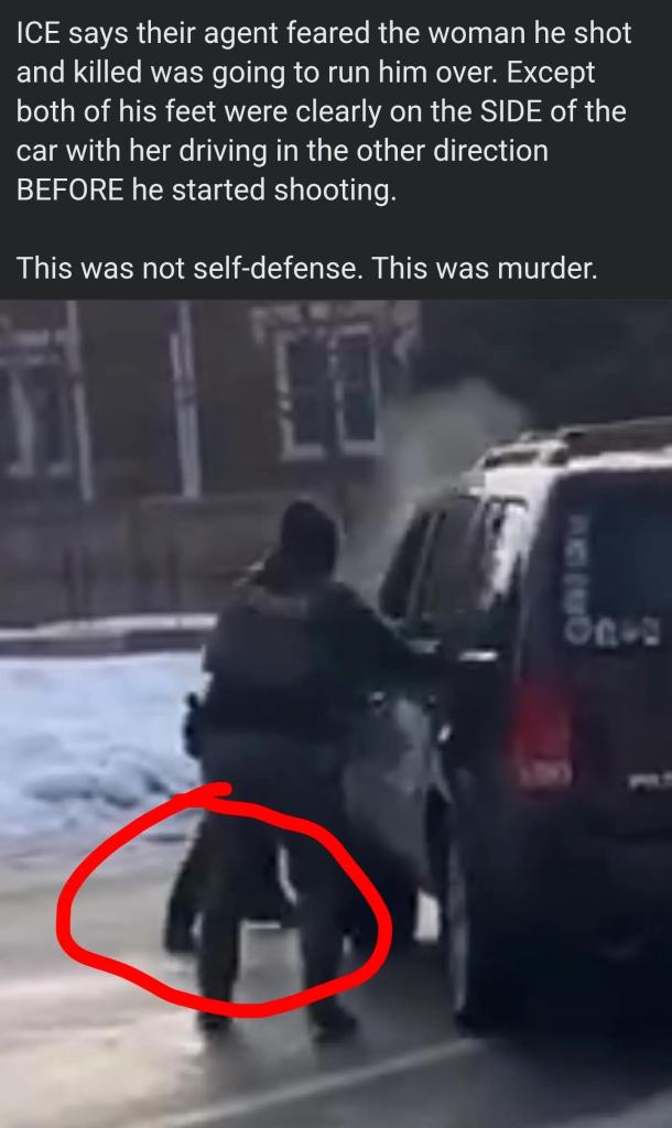She is turning away, not trying to run him over, and he shoots her dead because he can. This is the United States of America. Bastion of freedom. Light of the world. That is what we believed we were. This is what we are today, thank you MAGA voters and those who did not bother to vote at all.